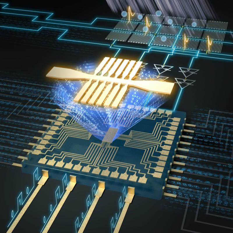 图2. 超导纳米线逻辑芯片实现对单光子探测器阵列的数字化读取。