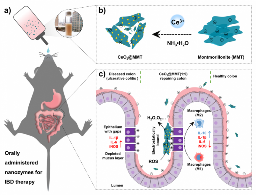 现代工学院魏辉教授课题组报道可口服CeO2@MMT纳米酶用于靶向治疗小鼠炎症性肠病