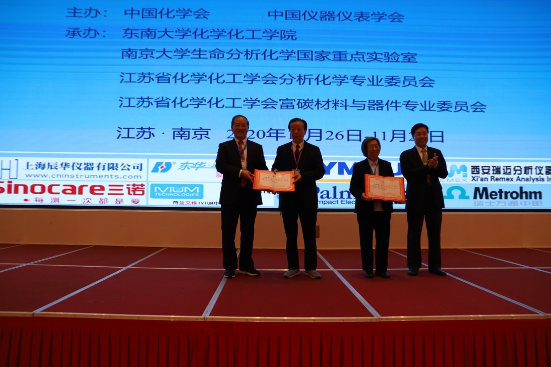 "电分析化学终身成就奖"由中国化学会分析化学委员会设立,旨在表彰为中国电分析化学的科技创新和学科发展做出杰出贡献的电分析化学工作者。由本领域专家提名,不定期评选,在每三年一次的全国电分析化学学术会议上公布和表彰。20201127日,中国化学会分析化学学科委员会在第十四届全国电分析化学学术会议上颁布了本次"电分析化学终身成就奖",我教授陈洪渊院士和中国科学院长春应用化学研究所研究员、第三世界科学院院士董绍俊喜获殊荣。