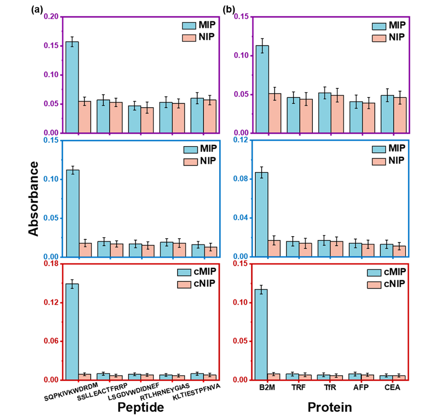 图5. 癌细胞荧光成像 图6. 基于双重cMIP的c肽分析