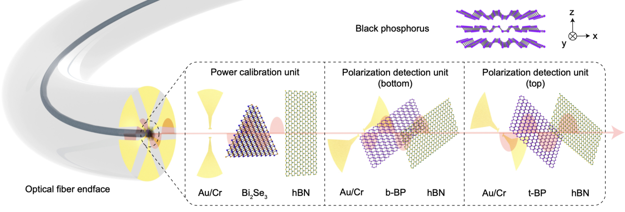 总的来说,该工作提出了一种构建多功能集成的光电器件的通用方法,通过沿光路堆叠超薄透明光电单元,有望保证器件同时具备紧凑的横向和纵向尺寸。该方法未来可以被改进并用来测量光学的其他内秉和外秉属性,譬如波长、入射角度、自旋和轨道角动量等,为具备多样化的光学、光电功能的超紧凑光学系统铺平道路。相关工作以"Twisted black phosphorus–based van der Waals stacks for fiber-integrated polarimeters"为题发表在《Science Advances》上。
