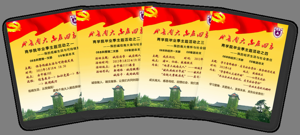 2012年2月至5月,商学院08级本科支部本着“成长凯发、感恩母校、关注社会、责任于我”的活动理念,开展了以“成长凯发·志在四方”毕业季主题活动,08级本科团总支、四个党支部共同开展了“我的经济生活与社会责任”、“我的低碳生活与可持续发展”、“我的诚信凯发录与社会诚信”、“我的凯发情怀与社会回馈”四场活动,通过实地走访、企业调研、微博交流、座谈分享等形式将党团活动与社会实践相结合、将育人理念与新媒体的运用相结合、将党团员青年的先进性教育与毕业指导相结合,提升思想、凝炼精神,交流一些想法、做一些实事。