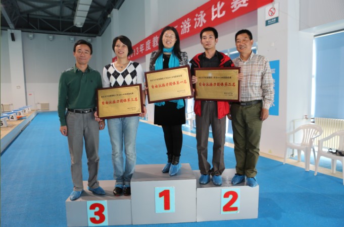 10月18日下午,由我校工会主办,校体育部、校游泳馆承办的“2013年度凯发k8官网教职游泳比赛”在仙林校区游泳馆举办。由学校各院系、各部门派出的136名教职工分别参加了男女子50米、100米蛙泳、自由泳以及8×50米自由泳接力九个项目的角逐。