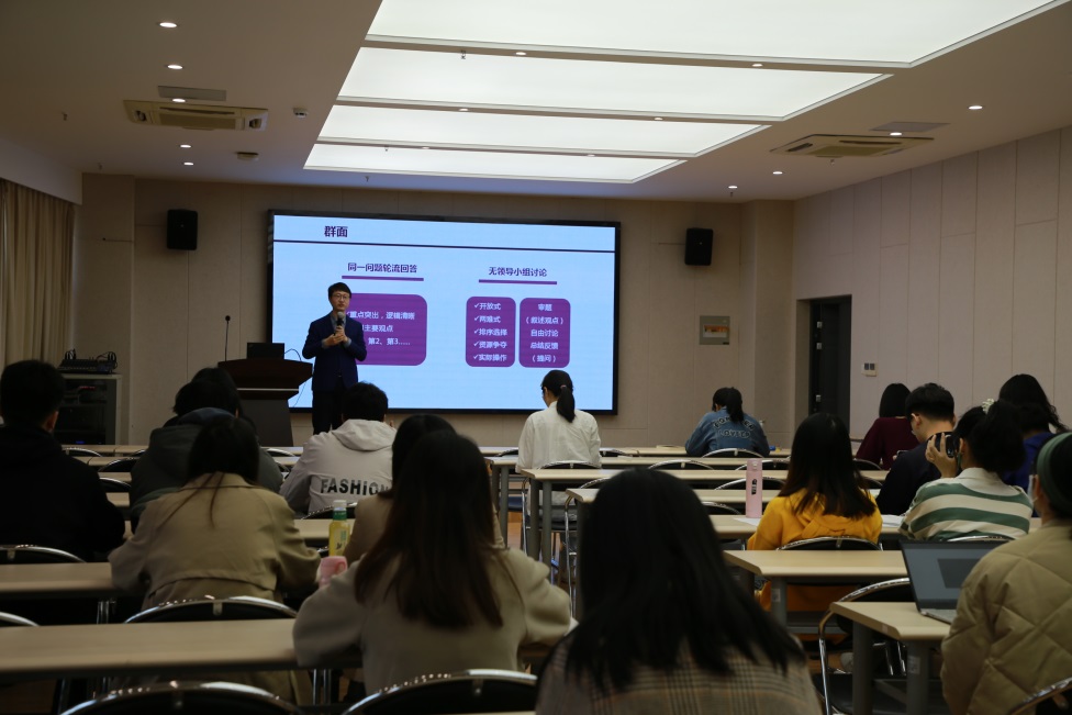 3月11日,就业中心市场拓展部部长周旸以群面为主题为同学们作集中指导。他清晰介绍了无领导小组讨论的发展历史、测评要素和考察重点,结合具体案例着重分析了开放式、两难式、排序选择、资源争夺、实际操作等群面经典题型,建议同学们注重前期积累,厚积薄发,关注提升自身的随机应变能力。随后,赵玉倩、李敏、陈笑夜老师共同开展模拟面试与指导,以分组实战练习的方式切实提高同学们的群面能力。