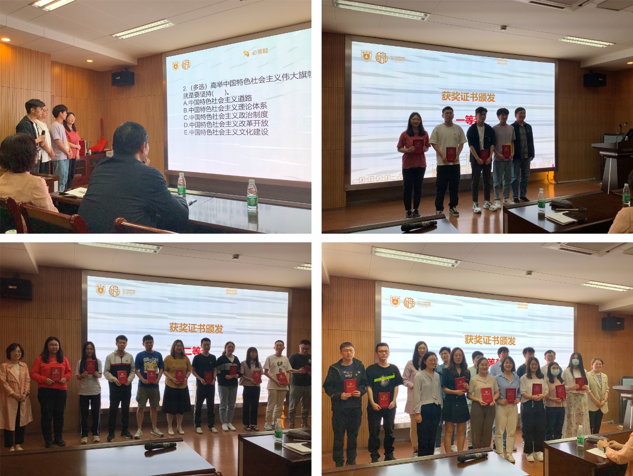 最终,来自2021级硕士生一支部的四位同学谭志海、肖炜东、曹婷婷和李飞扬站到了最后,为支部收获了本次知识竞赛的冠军。