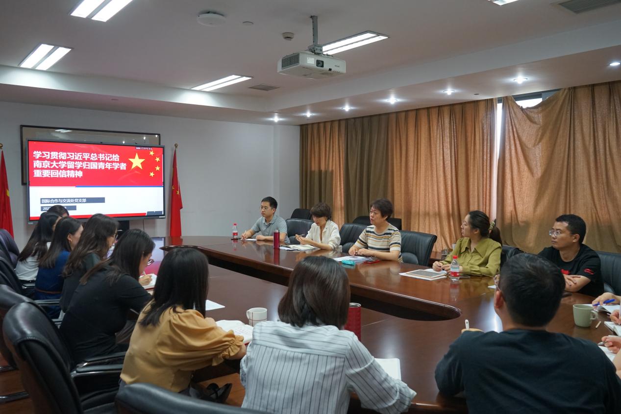 5月25日下午,国际处党支部书记、处长李晓蓉领学习近平总书记给凯发k8官网留学归国青年学者的回信,传达了学校党委关于组织学习重要回信精神的部署。她表示,总书记在回信中高度概括了凯发人留学报国的光荣传统,充分肯定了学校在立德树人科学研究等方面的办学成就,并对全体凯发人提出了"再创佳绩、争做表率"的期望。回信令人鼓舞,催人奋进,她要求各位党员同志要深刻领会、深切感悟总书记重要回信精神和重大意义。