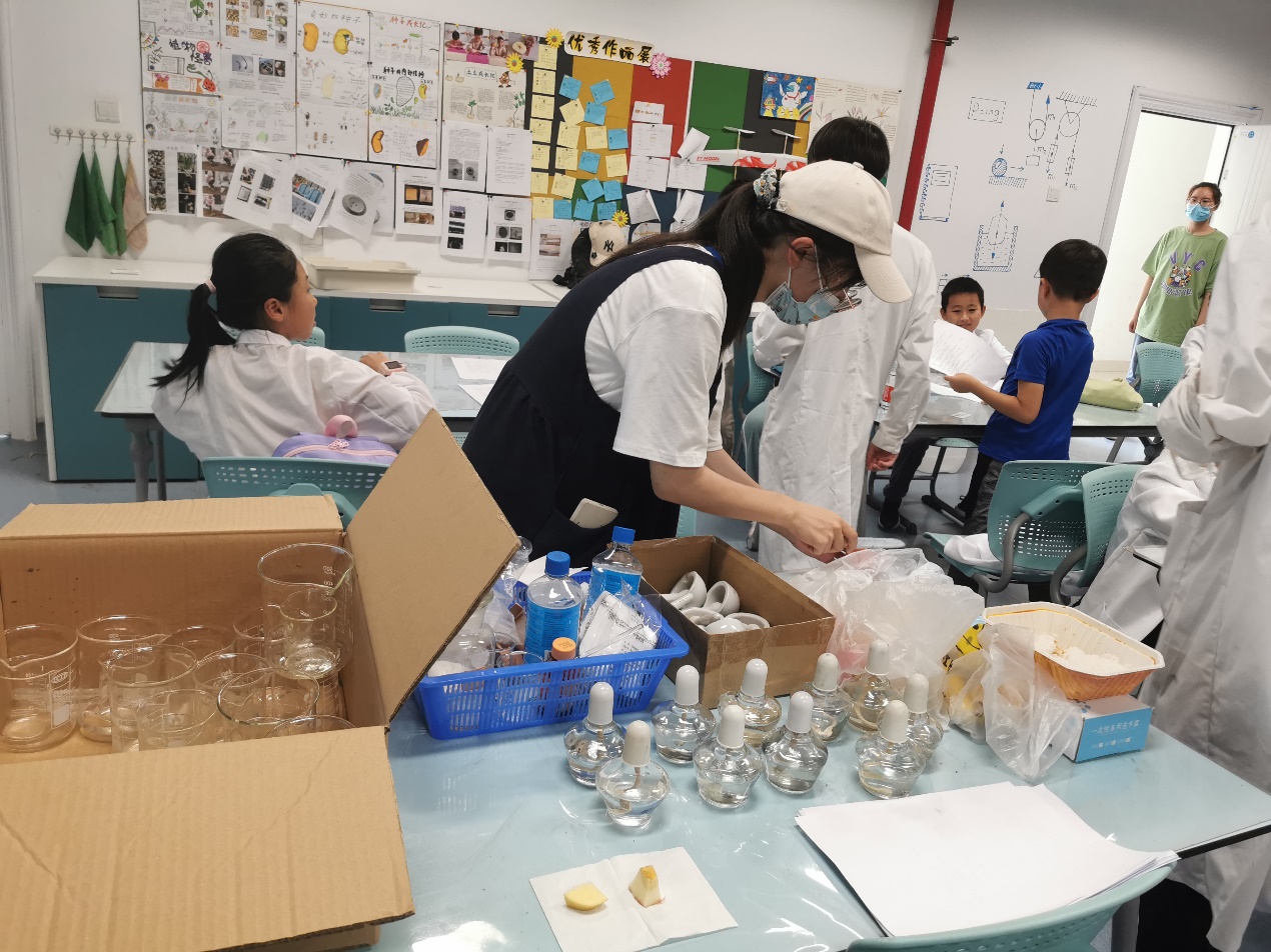 正如志愿者代表吕文博同学在开营仪式中承诺的那般,各位志愿者竭尽全力为小朋友们带来优质的课程内容和丰富的实践体验,激发小朋友学习科学的热情。在为期3天的夏令营中,实践团队为主要来自金陵小学4-6年级的90名小学生带来了18课时的实验课。课程围绕"化学助力美好生活"这一主题,以"趣味与知识并重,前沿与课本呼应"为核心思想,设计了与生活最密切相关的六个专题——"盐、醋、糖、蛋白质、维生素、淀粉",配套相关的理论教学与实验教学,通过有趣的实验带领他们探索这些物质的特性。最终,化学科普课程让孩子们在自己动手实验探究的过程中实现对化学的"初探索",让他们爱上生活中的化学,培养他们小小科学家的意识,在同学们心中悄然播种一颗热爱化学、探索奥秘的种子。