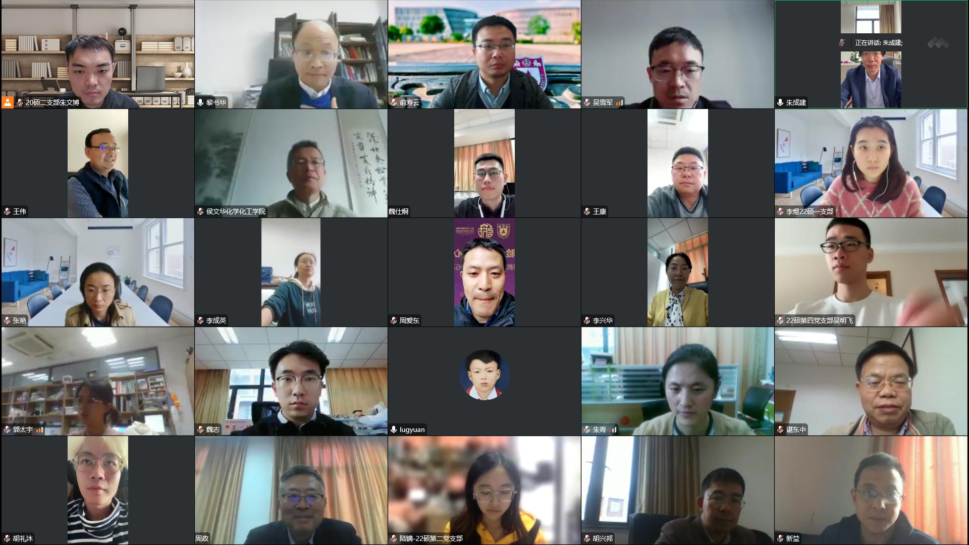 10月28日下午,化学化工学院召开党委扩大会议,院党委书记朱成建主持会议,传达党的二十大精神并作工作部署,会议通过腾讯会议的形式线上进行。