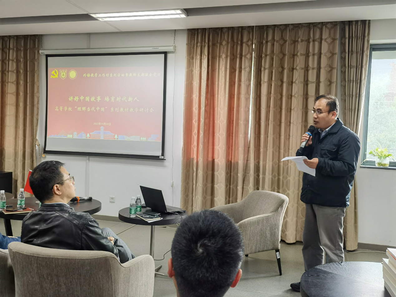 11月24日,为进一步研究探讨如何深入推进高等学校"理解当代中国"系列教材入脑入心,提升教师课程思政育人能力与水平,培育能讲好中国故事的新时代外语人才,外国语学院党委举行"讲好中国故事 培育时代新人"高等学校"理解当代中国"系列教材教学研讨会暨教师支部联合党日活动。校党委宣传部副部长王永义、本科生院教育教学发展与评估中心主任施林淼出席活动,外国语学院英语教工与美国文学会联合党支部、西语教师党支部、俄日朝教师党支部和部分教师代表近30人参加活动。外国语学院党委委员、副院长张俊翔主持活动。