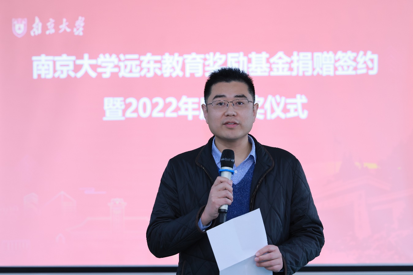 孙宁华宣读《2022年度远东奖学金、奖教金颁奖决定》。邵亮和贾良定共同为获奖师生颁发证书。