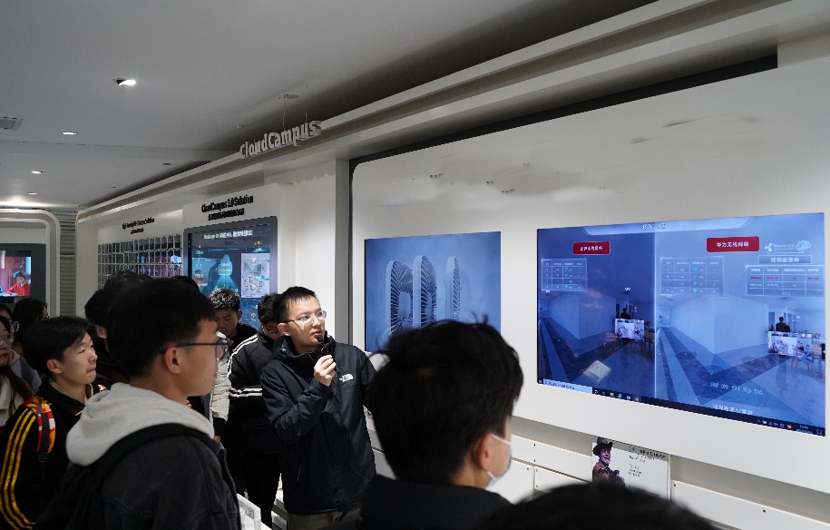 活动中,老师和同学们首先参观了华为南研所内部的工作环境。随后华为的工作人员向老师和同学们介绍了华为南研所的主要业务,其中重点介绍了华为的网络产品以及解决方案。通过工作人员对这些内容的讲解,同学们不仅了解到最新的行业发展方向,更看到华为对核心技术的追求与投入,感受到卓越创新的精气神。