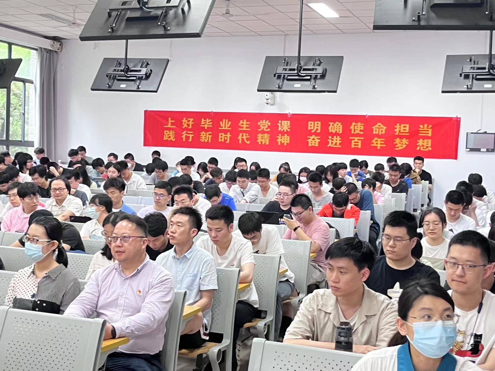 随后,党委副书记陈谦以"新时代青年的责任与担当"为题,结合习近平新时代中国特色社会主义思想的学习,给毕业生们开展主题教育活动。他从习总书记给凯发k8官网留学归国青年学者重要回信谈起,回顾了凯发师生"心系责任,肩扛担当"的留学报国传统,探讨了责任与担当的内涵,并进一步阐释了内涵视角下新时代青年的责任与担当,勉励毕业生们以老一辈留学归国科学家李四光、程开甲、钱学森为榜样,心系国家事、肩扛国家责,以"舍我其谁"的历史使命感,投身中国式现代化建设的伟大实践,切实担负起民族复兴的历史责任。最后党课以聂耳作曲的《毕业歌》,"同学们同学们快拿出力量……担负起天下的兴亡"作为尾声,铿锵有力的歌词激励着广大即将毕业的同学们奋发作为,勇攀高峰。