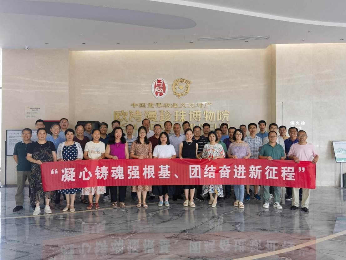 湖州德清还是世界珍珠养殖技术发源地。学习期间,一行还来到湖州特色产业——珍珠深加工行业创新引领者浙江欧诗漫集团参观考察。大家参观了欧诗漫珍珠博物馆以及集团“美丽党建”品牌文化馆,了解到欧诗漫集团以独特的珍珠文化为根,通过中国特色原料、中国原创技术的加持,构建了一条覆盖珍珠全产业链的创新发展之路,让本土品牌极速提质的发展历程。