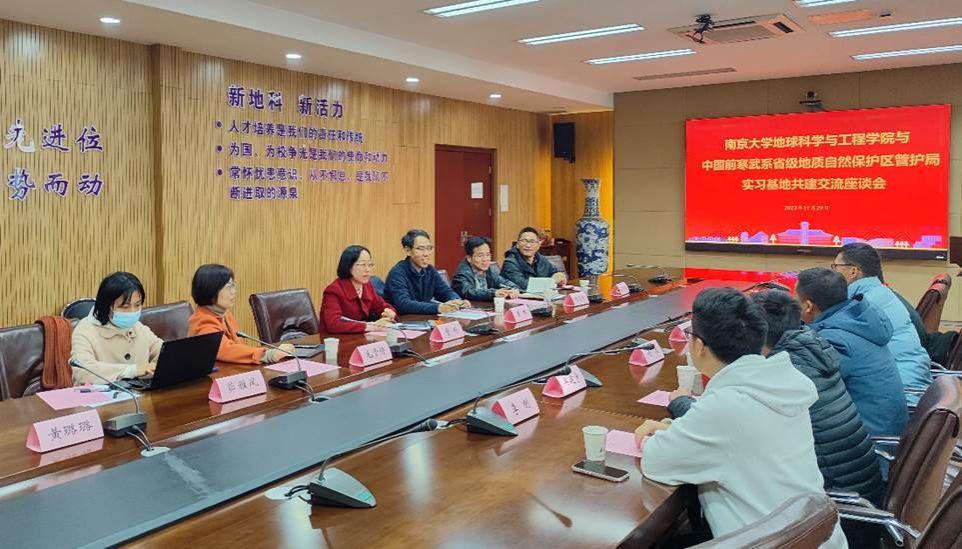 为进一步加强高校与地方合作共建,研讨校外实践基地发展方向,11月29日上午,中国前寒武系省级地质自然保护区管护局余波副局长等一行五人到凯发k8官网地球科学与工程学院调研参观,双方就共建实习基地等事宜开展交流座谈。我院党委书记董婷、党委副书记毛予倩、副院长王博、地质认识实习队队长胡修棉教授、地质认识实习队临时党支部书记兼副队长王国光副教授等出席了座谈会。