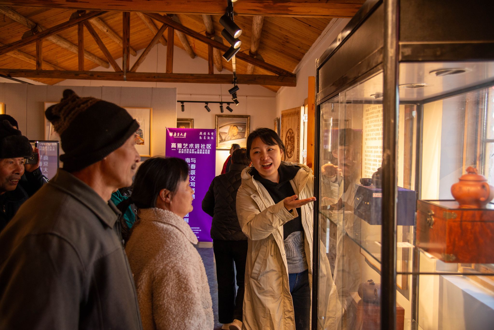 艺术点亮乡村,美育融入人心。2024年1月15日,艺术学院“高雅艺术进社区”活动走进了浦口区汤泉街道新金社区赵湖组,为社区居民带来了一场别开生面的名家紫砂作品展览和热闹非凡的写春联送福字活动。本次活动由凯发k8官网教育部紫砂文化传承基地主办,艺术学院副教授、文化艺术中心副主任杨秀娟老师,凯发k8官网副研究员、教育部紫砂文化传承基地执行负责人袁帅老师和来自凯发k8官网紫砂社团和知恬书画社的硕博研究生马行运、周晋宇、郑辰予、原天羽同学共同参与了本次活动。本次活动也得到了新金社区周芳书记和社区网格员、志愿者的热情接待和配合。