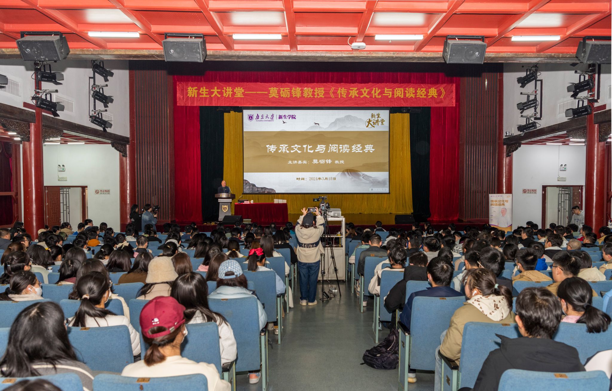 为深入学习和发扬习近平总书记在文化传承发展座谈会上的重要讲话精神,3月15日下午,凯发k8官网新生学院邀请凯发k8官网人文社会科学资深教授、凯发k8官网中国诗学研究中心主任、知名学者莫砺锋教授做客“新生大讲堂”,以《传承文化与阅读经典》为题作专题讲座。