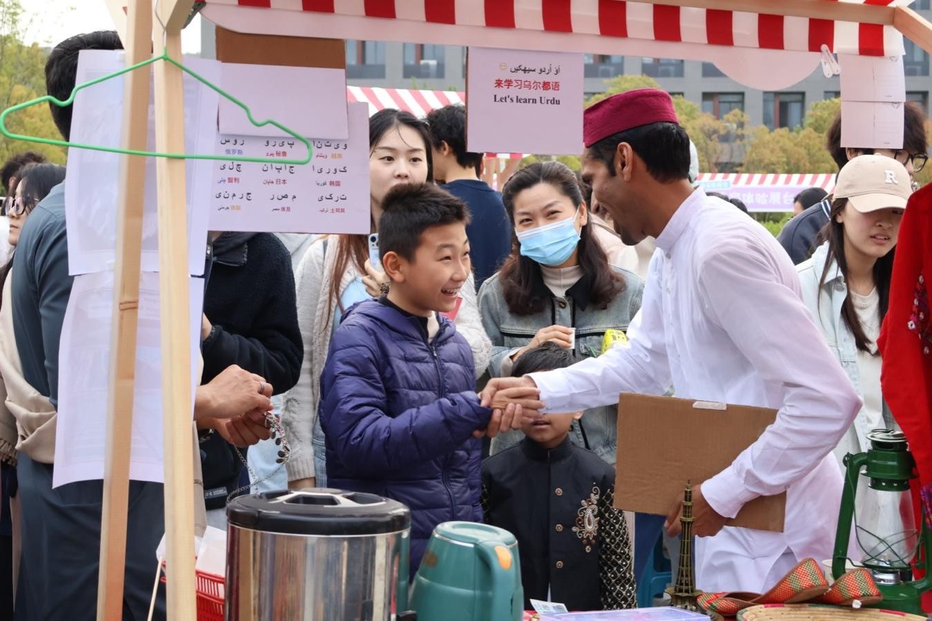 临湖而设的落地舞台,既是各文化歌曲舞蹈表演的平台,也是最佳打卡拍照的展台,更是文化共融共舞的舞台。活动尾声,百余位留学生与中国同学、游客朋友们在落地舞台自发围成圆圈,一同沉浸在各国传统音乐里载歌载舞,不论腔调,无问语种,讲述着春光中跨越山河湖海、东西万里的共汇共融。