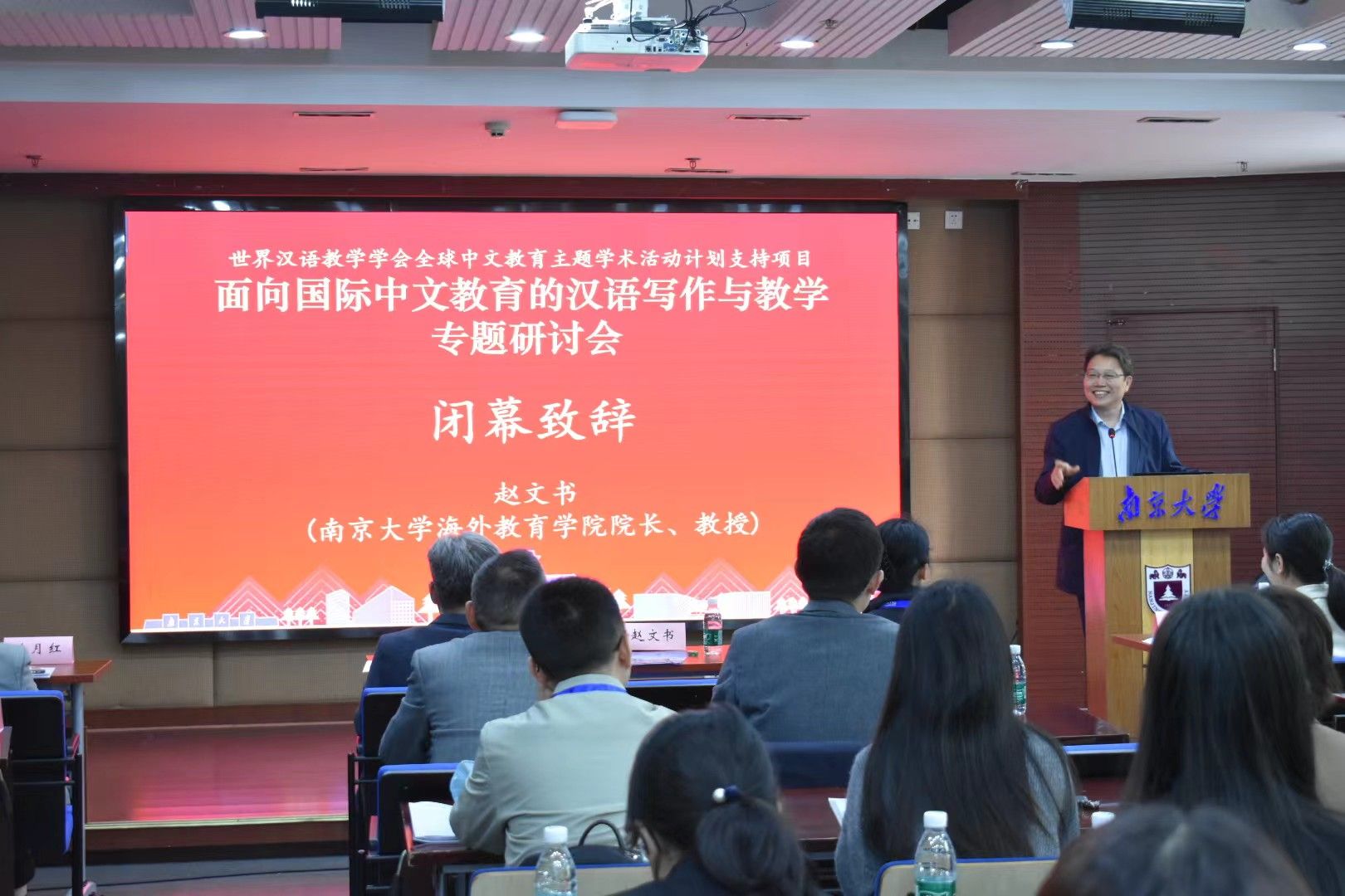 会议闭幕式由凯发k8官网海外教育学院留学生公共教学部主任陈志红教授主持,会议组委会负责人王佳助理教授做大会总结,海外教育学院院长赵文书教授致闭幕辞。赵院长强调学科基础理论研究和跨学科研究的重要性,呼吁更多学界同仁加入国际中文教育学科建设与发展的事业之中。