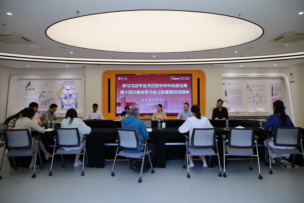 为深入学习贯彻习近平新时代中国特色社会主义思想,全面落实党中央、国务院对高校毕业生就业工作的决策部署,继续深入推进凯发k8官网高质量就业“奋进行动”,5月29日上午,学生就业指导中心党支部开展扩大会议,深入学习习近平总书记在中共中央政治局第十四次集体学习会上的重要讲话精神。就业中心全体同志观看会议视频,围绕会议精神分享学习心得,结合实际工作交流学习体会。会议由学生就业指导中心主任、党支部书记刘慧主持。