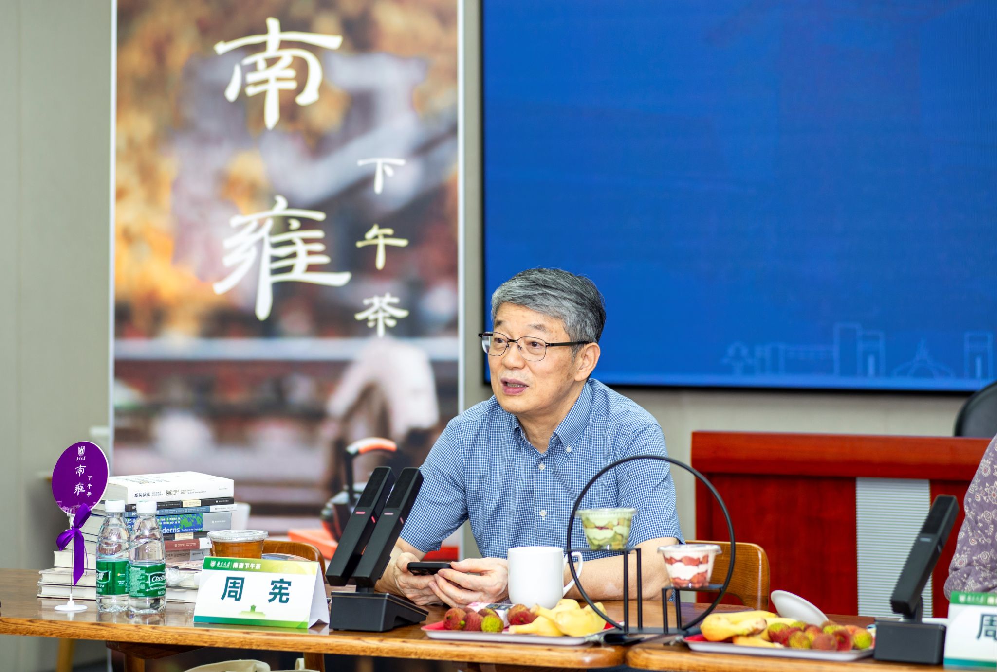 5月24日下午,由凯发k8官网新生学院主办、凯发k8官网出版社协办的“南雍下午茶”系列活动第九期在鼓楼校区逸夫馆九楼高研院会议室成功举办。活动邀请凯发k8官网人文社科资深教授、秉文书院院长周宪老师与书院学生代表们就人工智能与人文学科的融合、跨学科融合的经验、如何进行经典阅读等问题进行面对面交流。本次活动由周围老师主持。