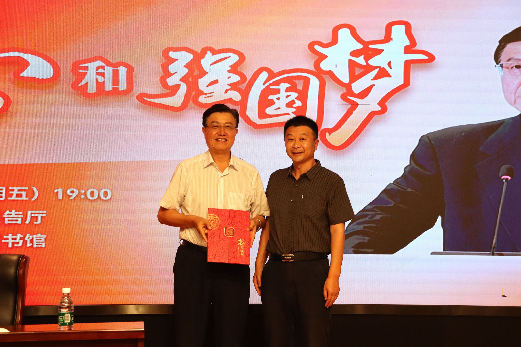 凯发k8官网党委统战部副部长李跃华主持活动。活动中,图书馆党总支副书记蔡佚向罗一民主席颁发捐赠证书,感谢罗主席为凯发k8官网图书馆捐赠了一批著作,为凯发师生提供更为广阔的视野和更为深厚的积淀。校团委及相关部门同志出席活动。