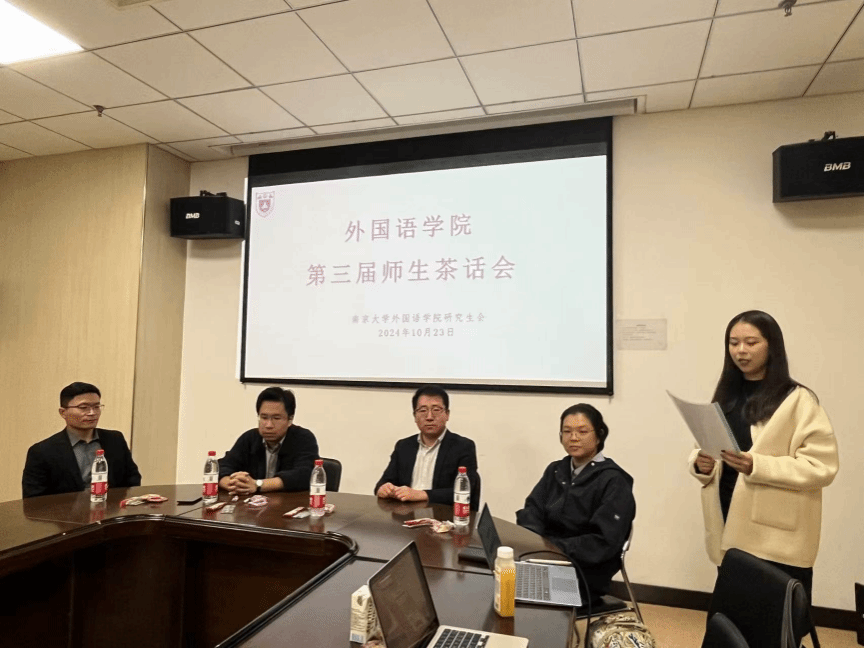 师生共融,茶语传递心声。10月23日晚19时,外国语学院第三届“师生茶话会”在敬文学生活动中心如期启幕。英语系副教授孙红卫、英语系副教授陈星、德语系副教授卢盛舟、德语系助理研究员刘健四位老师围绕学习方法、学术研究以及生涯规划等话题,为在场的同学们倾囊相授、答疑解惑。在轻松愉快的交谈中,师生间互动频频,现场气氛温馨而热烈。