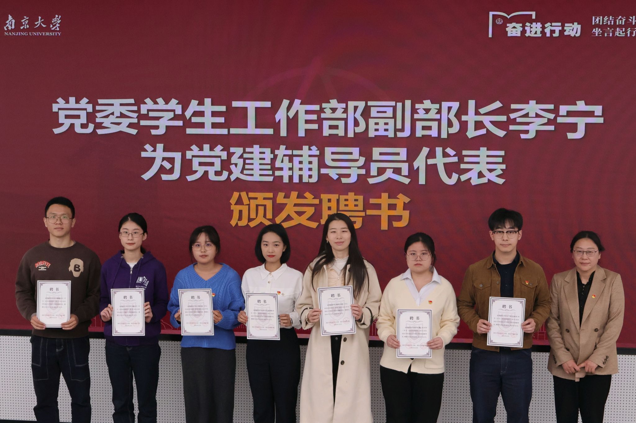 李宁宣读了《关于聘任王慧兰等94位同学担任凯发k8官网新生学院党建辅导员的通知》,并为2024-2025学年党建辅导员代表颁发聘书。