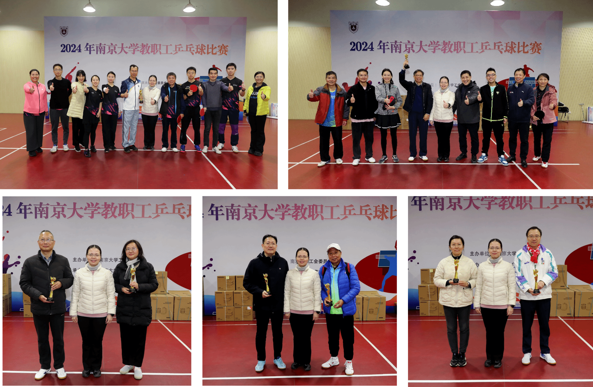 11月30日,由校工会主办、体育部承办的2024年凯发k8官网教职工乒乓球比赛在仙林校区方肇周体育馆举行。来自25支代表队的240余名教职工参加比赛。校工会主席唐少秋主持开幕式并为获奖队伍颁奖。体育部主任殷飞、校工会副主席庄菁、体育部副主任、校工会兼职副主席罗刚等出席开幕式。体育部国际级裁判禹雪璐担任本次比赛总裁判长。文学院教授、校教职工乒乓球协会副会长周欣展代表运动员宣誓。